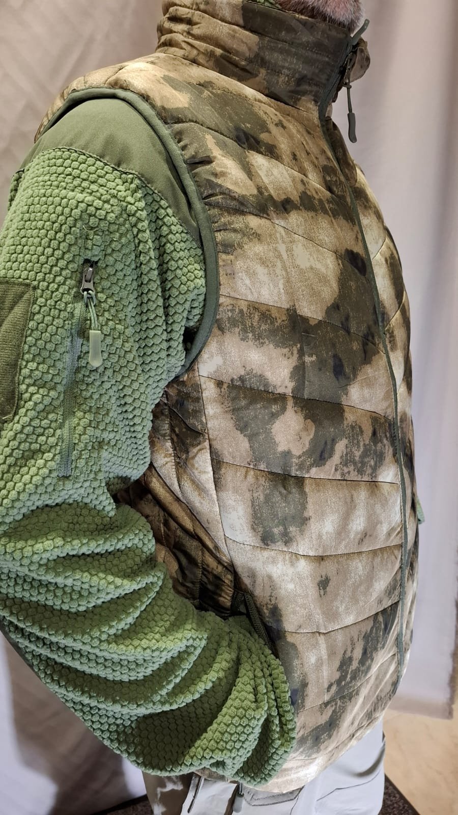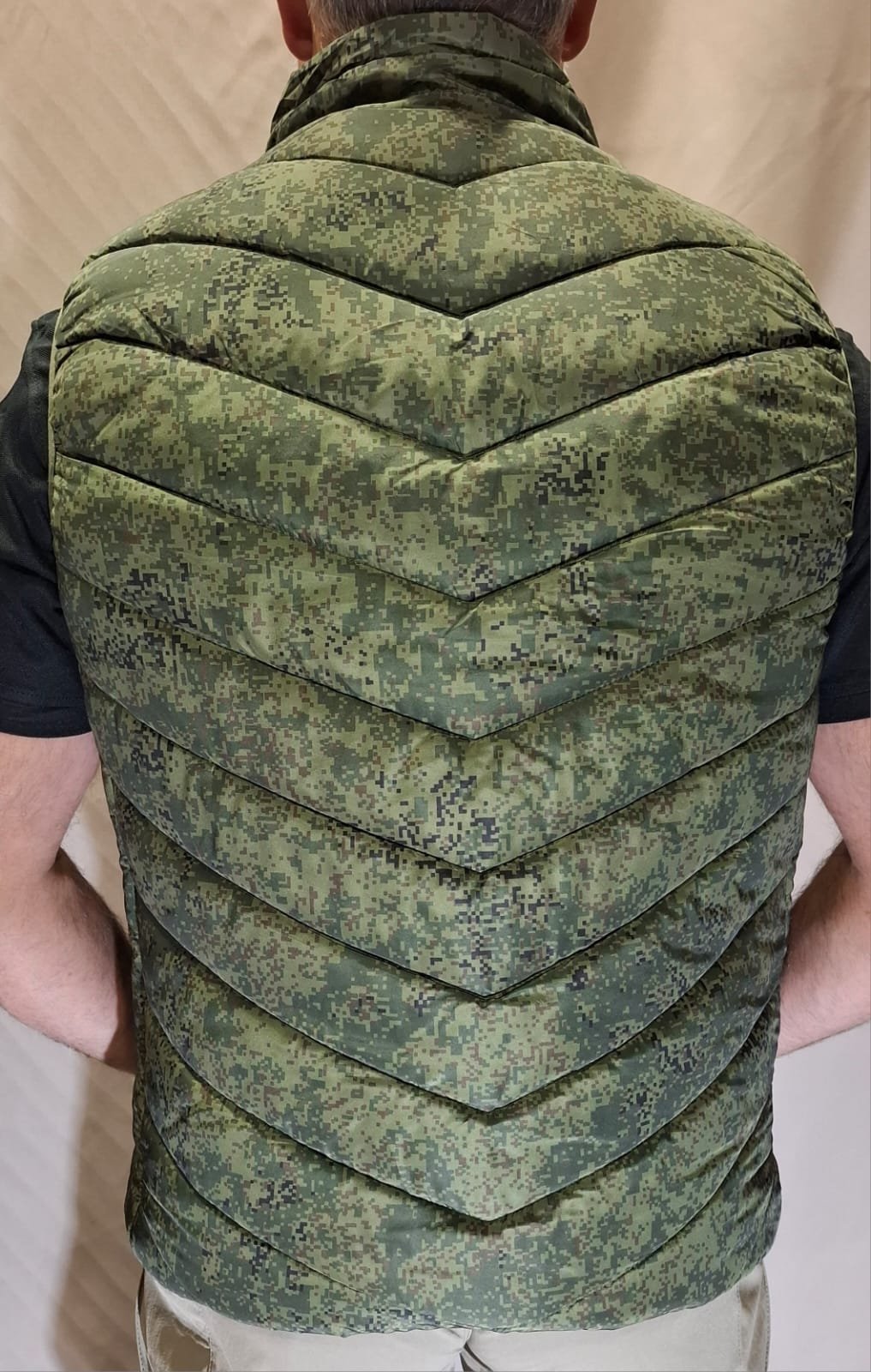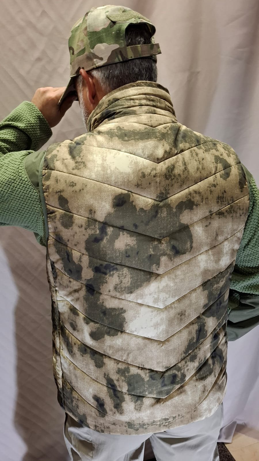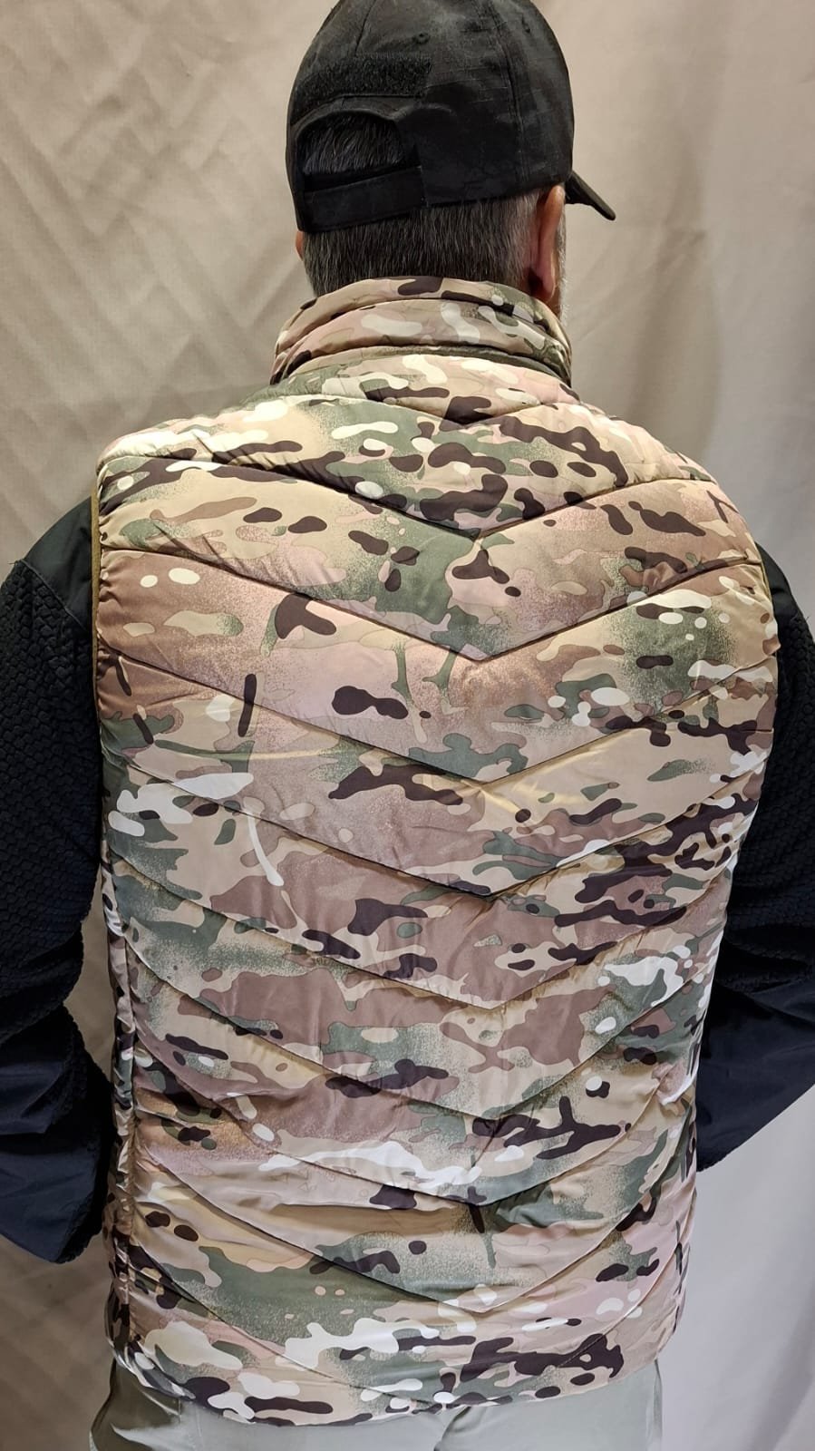 Chaqueta sin mangas de temporada mas fría, con bolsillos con cremallera y cuello alto.