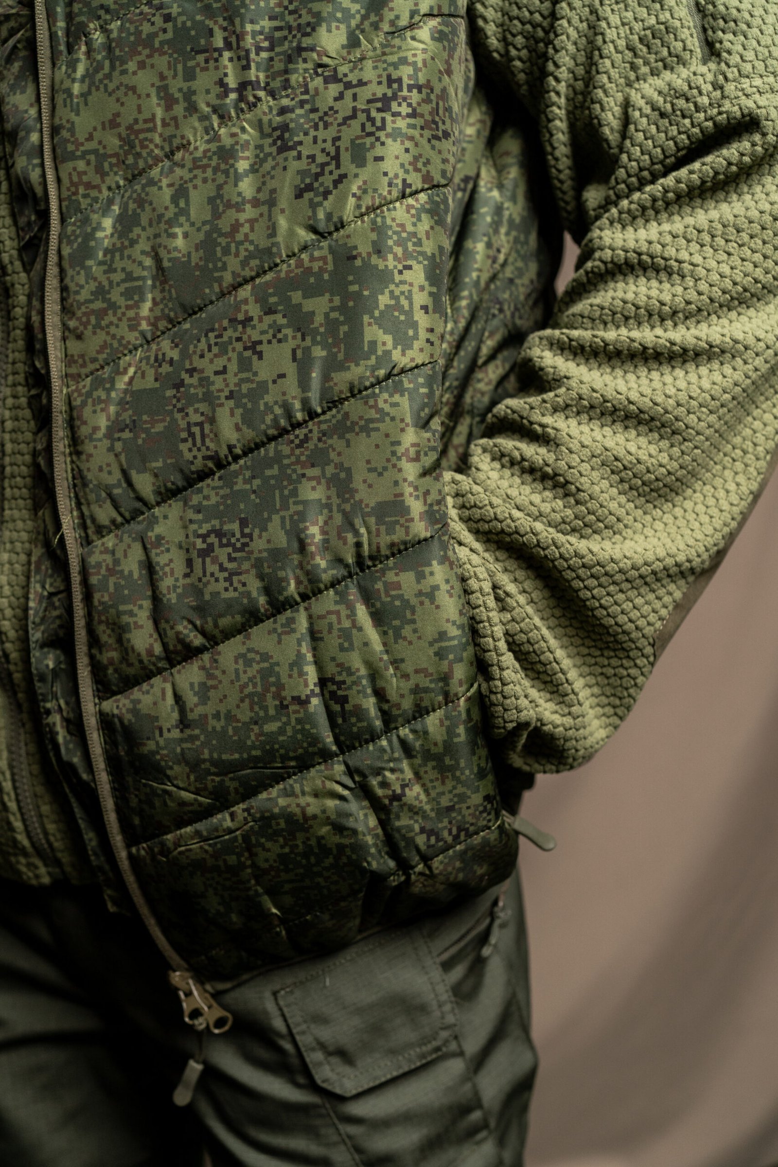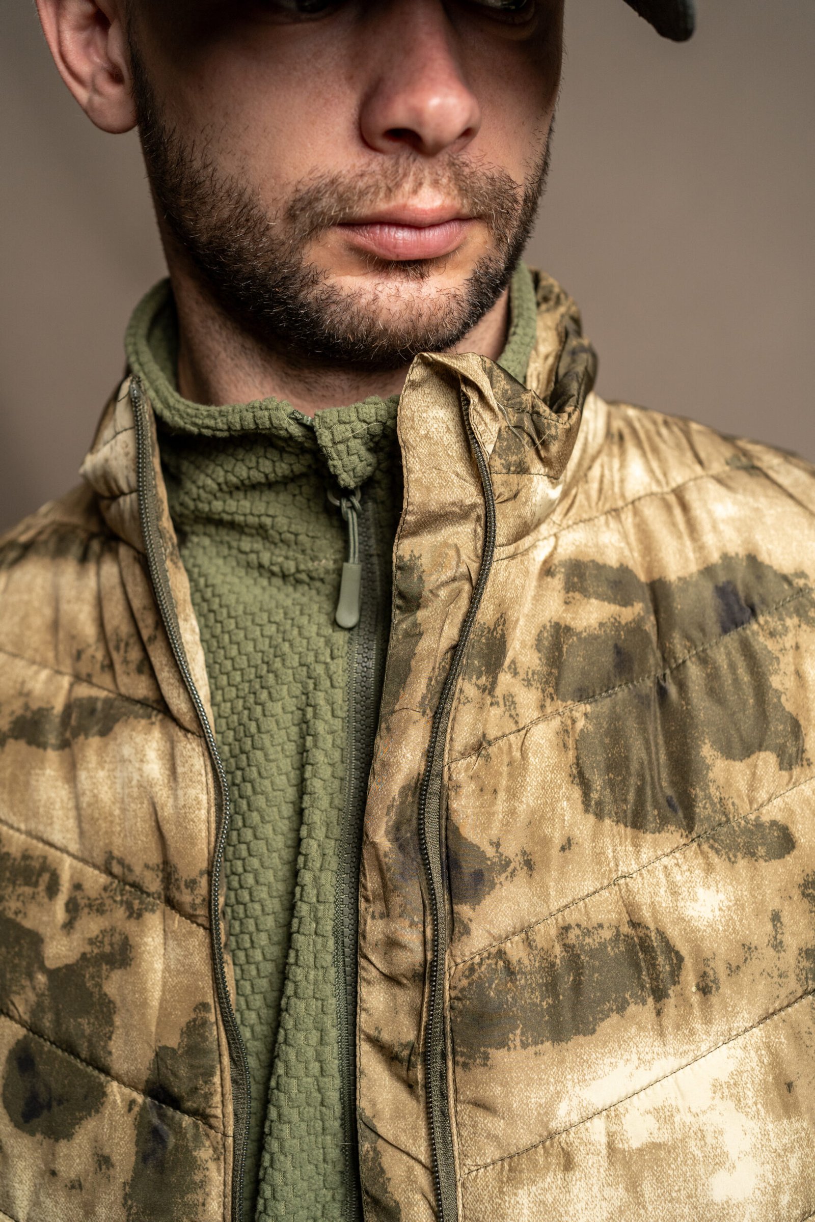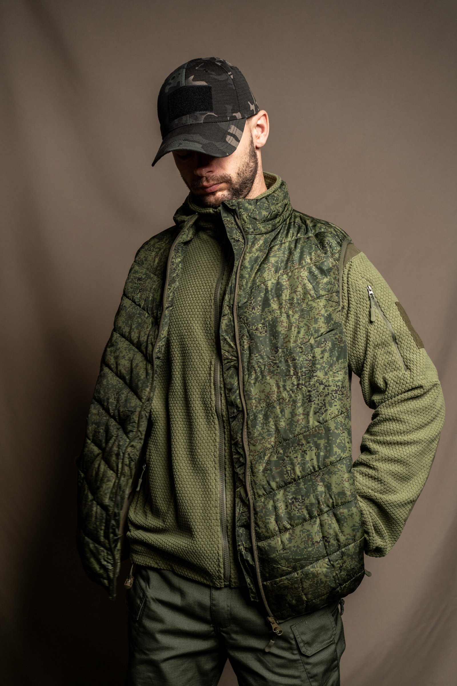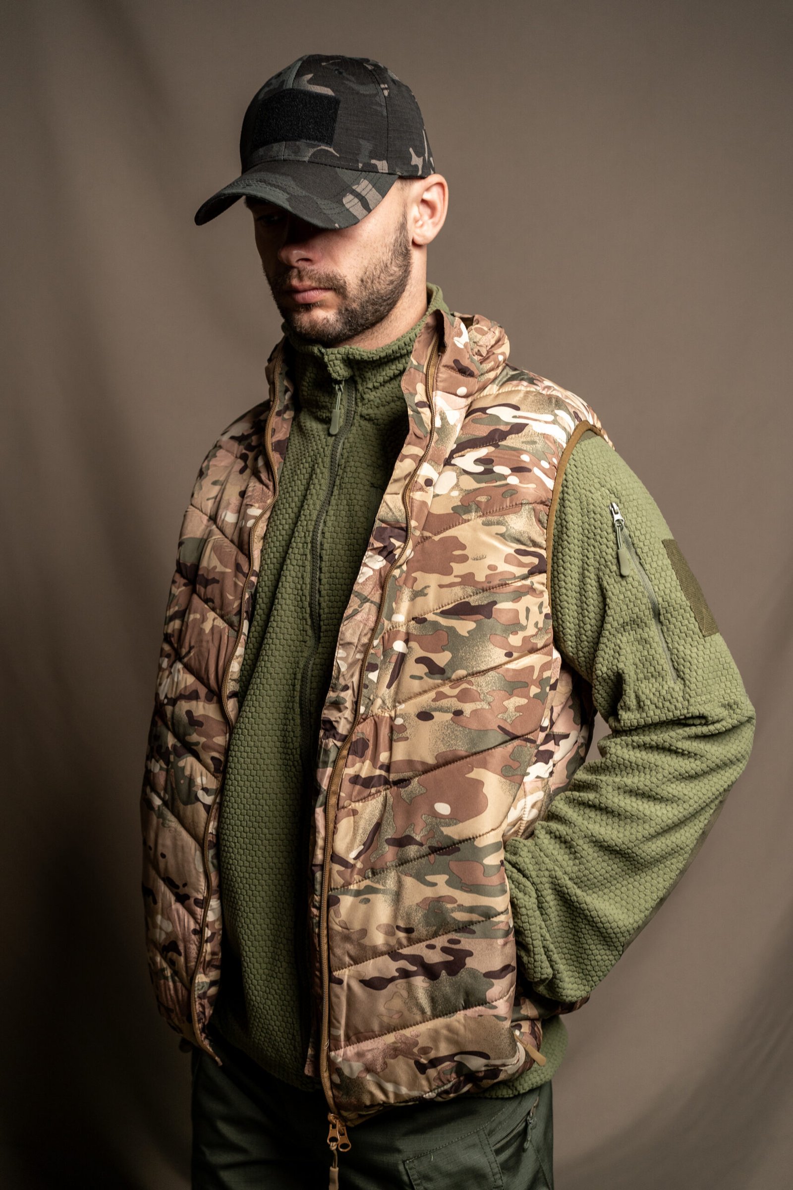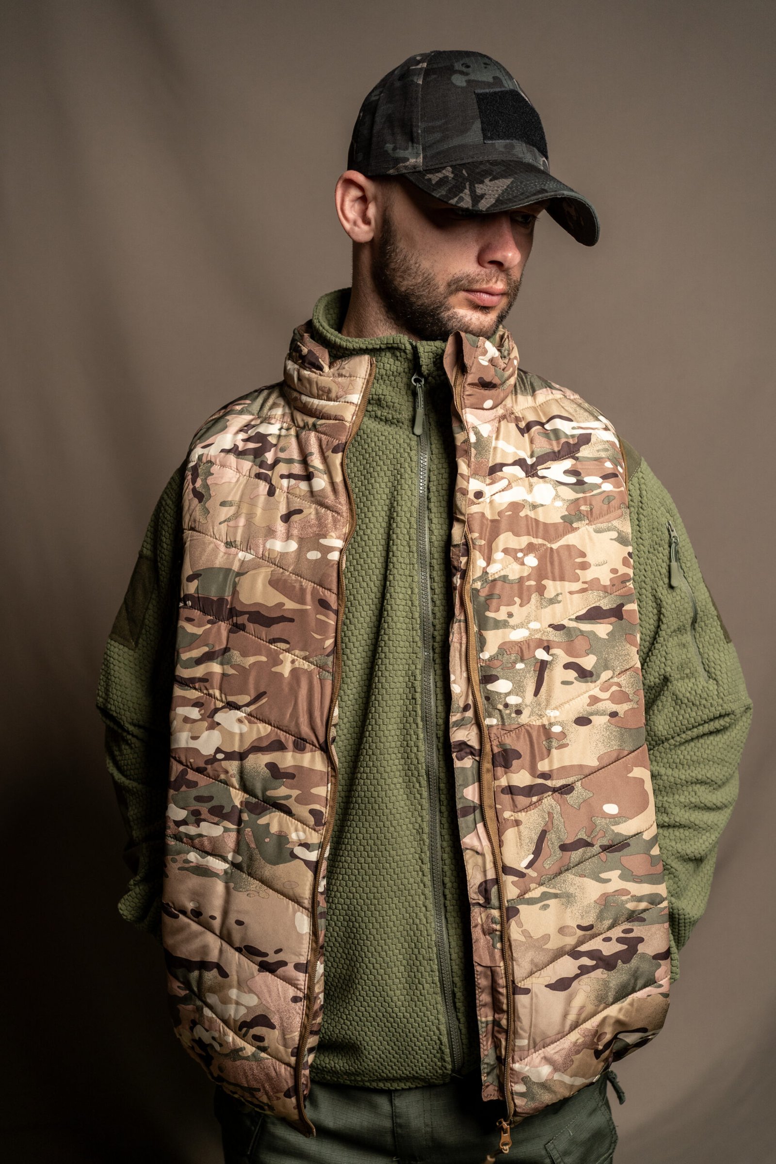 Chaqueta sin mangas de temporada mas fría, con bolsillos con cremallera y cuello alto.